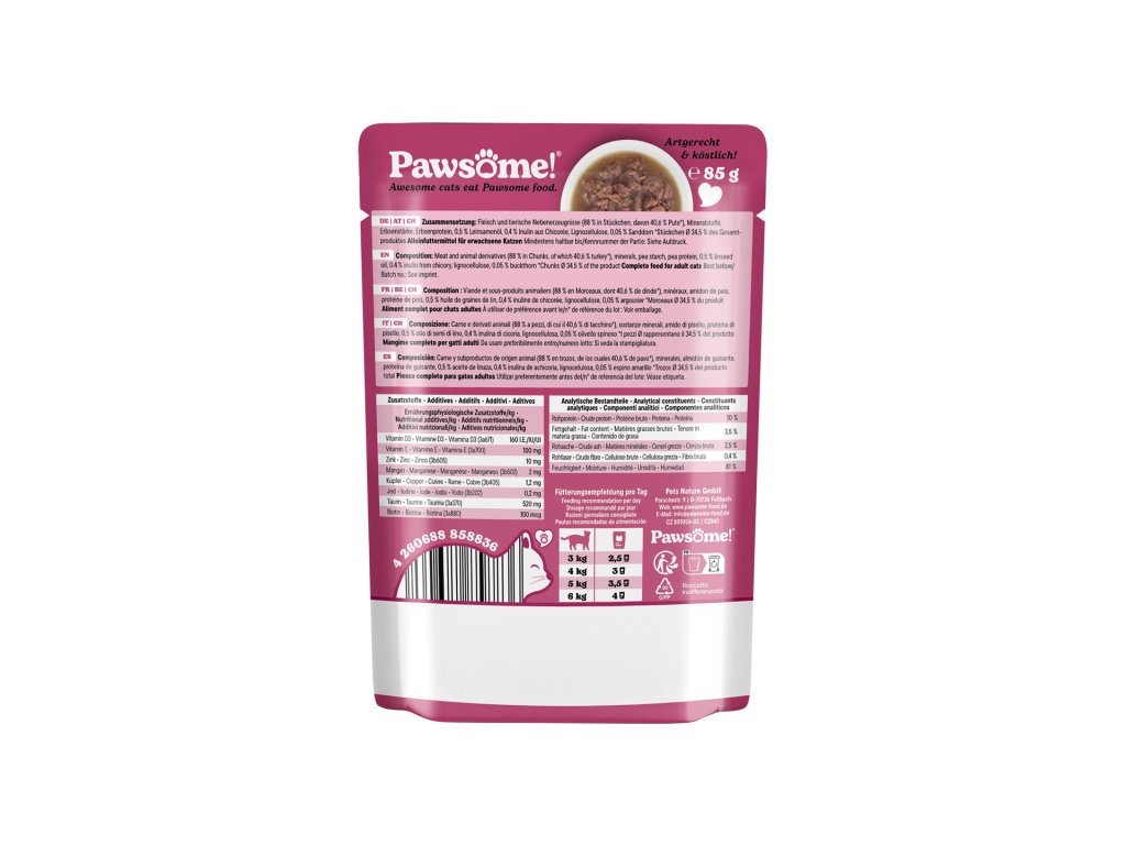 Krmivo Pawsome! je vytvořeno tak, aby splňovalo očekávání i těch nejmlsnějších mazlíčků a zároveň zajišťovalo jejich zdraví, vitalitu a celkovou spokojenost.