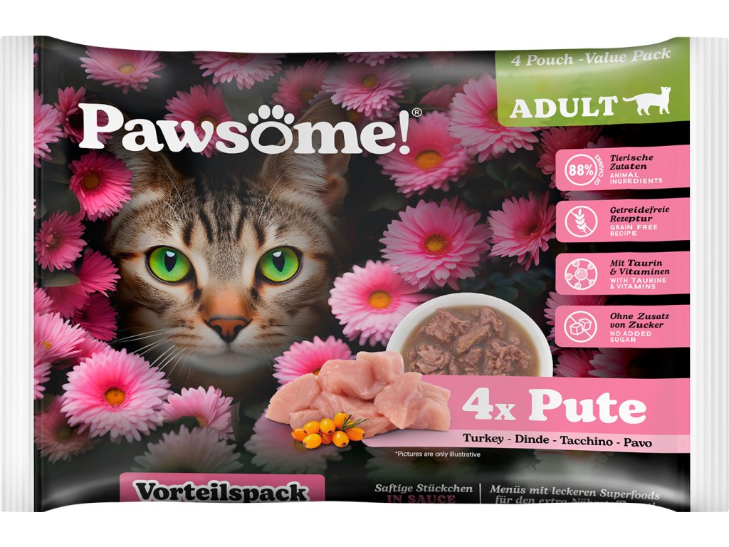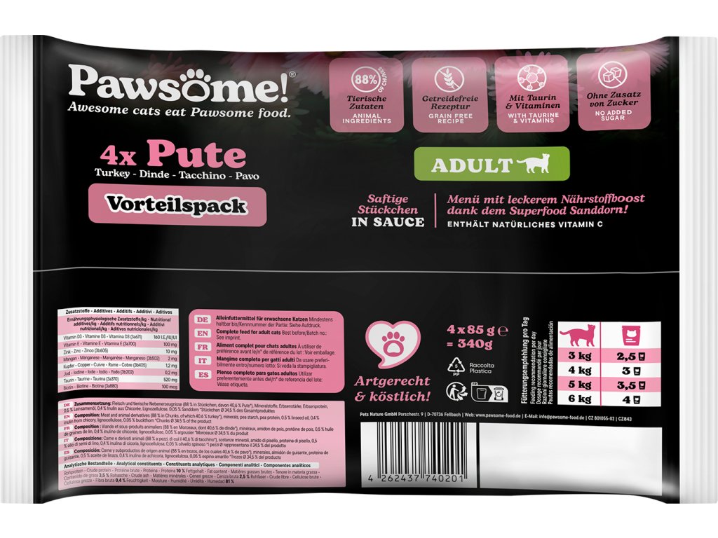 Pawsome Pawsome! Adult Kapsička s krůtím masem Multipack 4x85g
