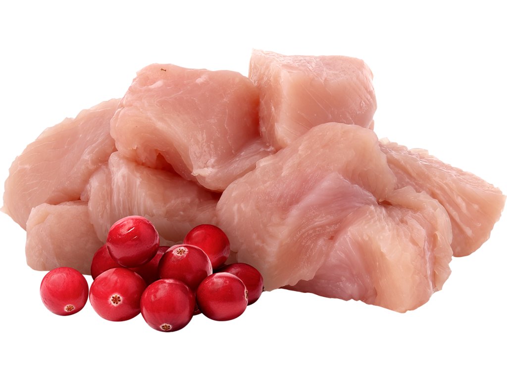 Složení: maso a vedlejší výrobky živočišného původu (kousky masa 88 %, z toho krůtí maso 11,6 %), minerální látky, hrachový škrob, hrachová bílkovina, inulin z čekanky 0,4 %, lignocelulóza, sušené brusinky 0,1 %