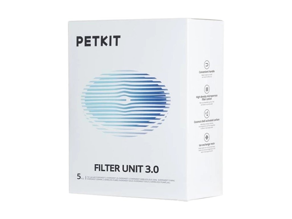 Filtry jsou určeny pro pítka Eversweet 1 / 2 / 3. Speciální třístupňová filtrace zajistí, že vaše kočky budou mít přístup k čisté a čerstvé vodě po delší dobu. V prvním stupni speciální síťový filtr účinně čistí vodu od chlupů a dalších nečistot. následně filtr s aktivním uhlím zbavuje vodu nepříjemného zápachu a obohacuje vodu o chuť. V poslední fázi snižuje iontoměničová pryskyřice hladinu těžkých kovů ve vodě. Výměna filtrů pro vás nepředstavuje žádný problém. Abyste zajistili čistotu vody a zachovali účinnost přístroje, nezapomeňte filtry v pítku často měnit.