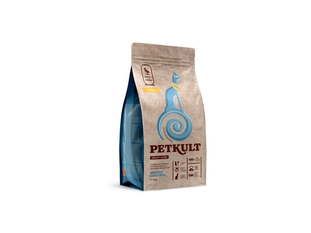 Petkult Adult Care Weight Control je kompletní holistické krmivo speciálně vyvinuté pro kočky náchylné k přibírání na váze nebo vyžadující kontrolu hmotnosti. Obsahuje více než 66 % živočišných bílkovin, L-karnitin pro efektivní spalování tuků a kloubní výživu ve formě glukosaminu a chondroitinu.