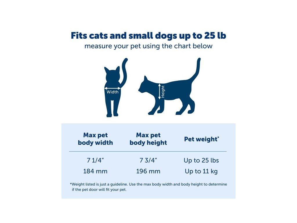 Vnitřní a vnější dvířka pro domácí mazlíčky umožňují kočkám a psům do 11 kg volný pohyb.