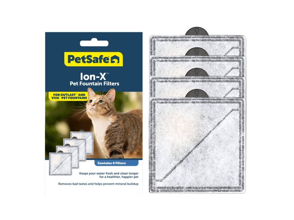Filtry Ion-X™ pro fontánky PetSafe® jsou odborně vytvořeny tak, aby zajistily, že voda Vašeho domácího mazlíčka zůstane čistá a svěží, což přispívá k jeho celkovému zdraví. Unikátní duální filtrační systém kombinuje sílu aktivního uhlí a iontoměničových filtrů. Uhlíkový filtr důsledně odstraňuje všechny špatné chutě a pachy, zatímco iontový filtr udržuje vodu měkkou, čímž zabraňuje usazování minerálů. Tyto filtry jsou speciálně navrženy pro fontánky PetSafe® Outlast™ a Viva™ a poskytují perfektní přizpůsobení a snadnou údržbu. Filtry jsou navrženy pro jednoduchý proces výměny.