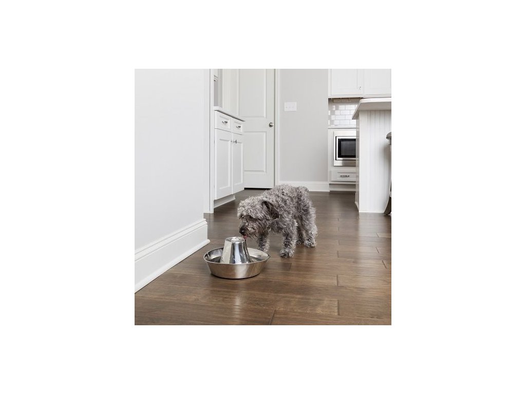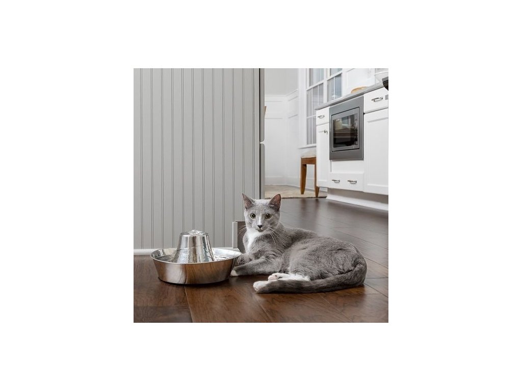 Pomozte svému mazlíčkovi zůstat šťastným, zdravým a hydratovaným díky fontánce PetSafe® Seaside, která je vyrobená z nerezové oceli. Fontánka poskytne vašemu mazlíčkovi čerstvou filtrovanou vodu. Kočky a psy přitahuje tekoucí voda, která je povzbuzuje k častějšímu pití, a tím podporuje jejich celkové zdraví. Tato fontánka pro domácí zvířata pojme 1,8 litru vody a má tak ideální velikost pro kočku nebo malého psa. Tichý chod fontánky zajišťuje, že voda nad věží jen jemně probublává (na rozdíl od volně padajícího proudu), což umožní i plachým nebo bázlivým kočkám cítit se pohodlně a rychle se s ní seznámit. Váš miláček si také může vybrat, jestli bude pít vodu z věže nebo misky. Fontána využívá čerpadlo, uhlíkový a pěnový filtr, které spolupracují na odstranění chlupů domácích zvířat, slin a pachutí z vody. Voda k pití tak zůstane vždy čistá. Nerezová fontána je vyrobena z vysoce kvalitních materiálů, které jsou hygienické a odolné vůči poškrábání a rzi. Když nastane čas fontánku vyčistit, umístěte nerezovou věž a misku do horní police vaší myčky nádobí. Čerpadlo vyčistěte ručně.
