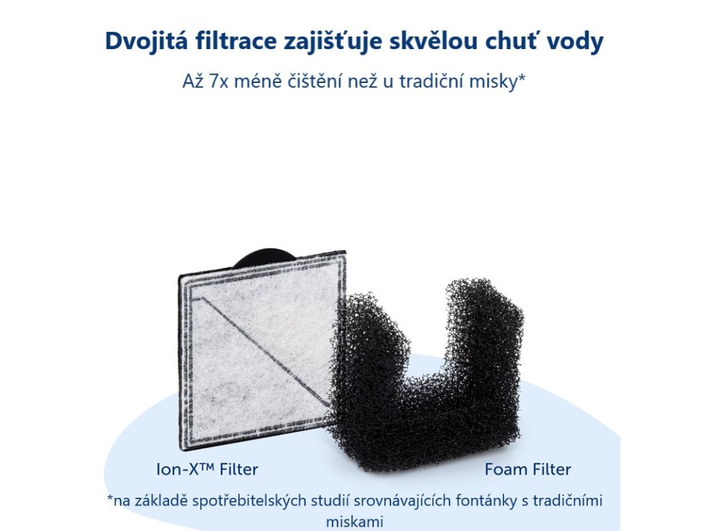 Fontánky pro domácí zvířata filtrují a nepřetržitě cirkulují vodu, aby se zabránilo růstu počtu bakterií a udržely vodu mnohem čistší a svěžejší chuti než stojící voda z misky. Pití dostatečného množství vody je důležité pro celkové zdraví Vašeho domácího mazlíčka. Váš mazlíček potřebuje každý den 70 ml vody na 1 kg tělesné hmotnosti.
