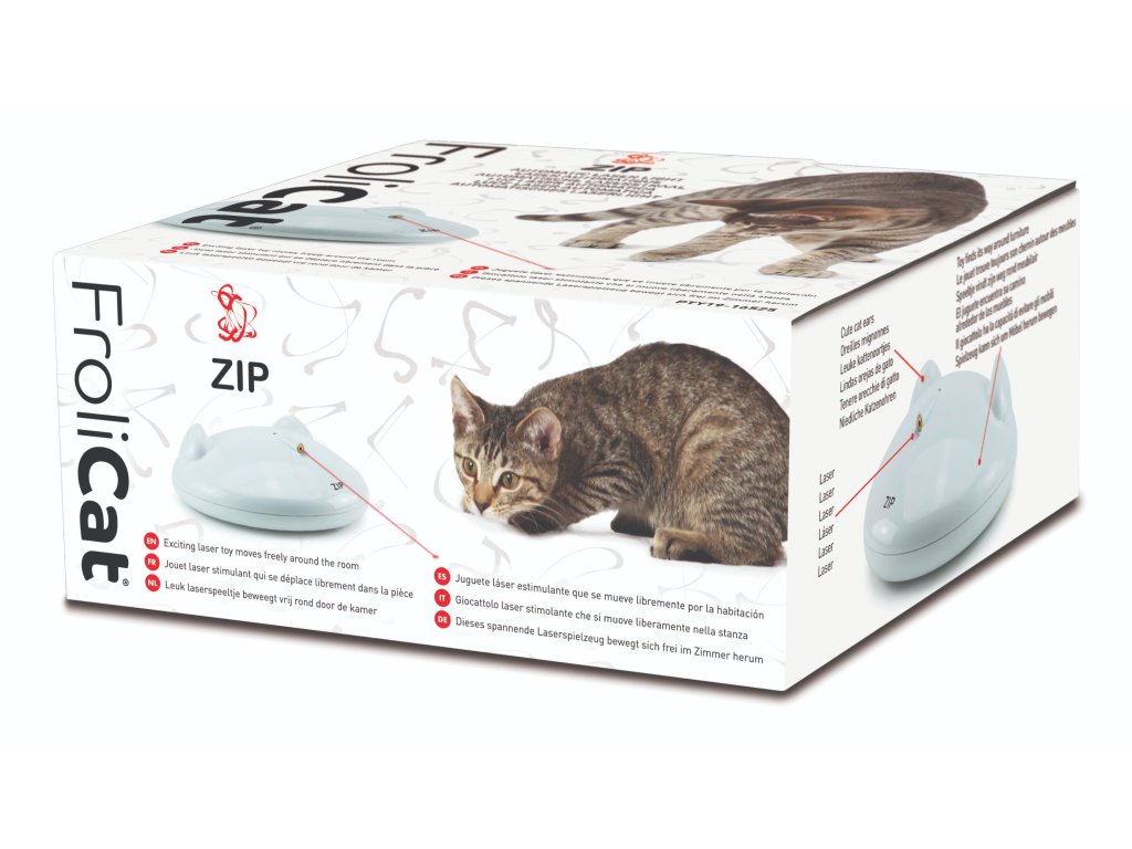Balení obsahuje hračku FroliCat® ZIP a manuál. Baterie nejsou součástí balení (produkt vyžaduje 3 baterie typu AA).