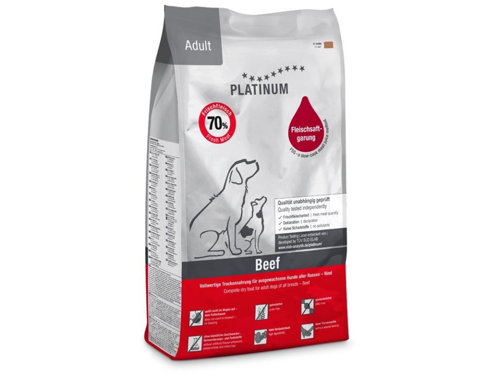 Platinum Natural Adult Beef & Potato je superprémiové krmivo s nulovým obsahem obilovin pro dospělé psy všech plemen. Díky svému přírodnímu složení je snadno stravitelné. Vyhovuje nutričním požadavkům psů s citlivým zažíváním a problematickou střevní mikroflórou.