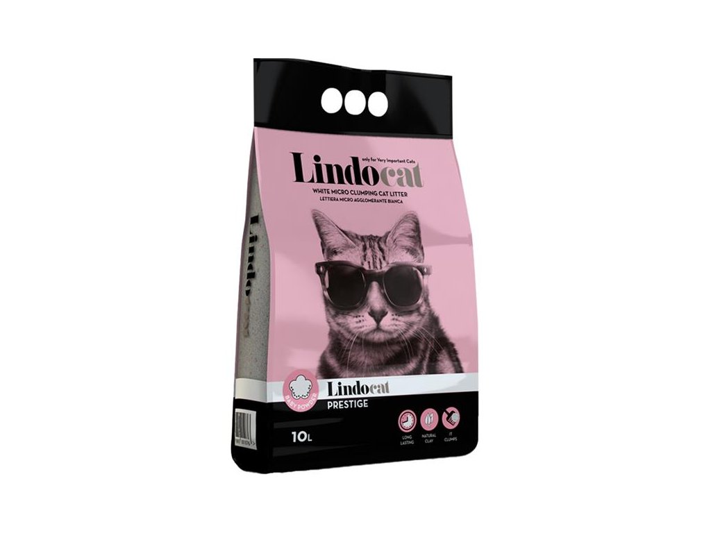 Lindocat Prestige s jemnou vůni dětského pudru je hrudkující neprašné stelivo vyrobené ze 100% přírodního bílého bentonitu s růžovými granulkami. Díky svému složení a drobné velikosti zrn rychle a pevně hrudkuje a účinně absorbuje tekutiny a pachy. Hrudky se vybírají snadno a s minimálními ztrátami steliva.