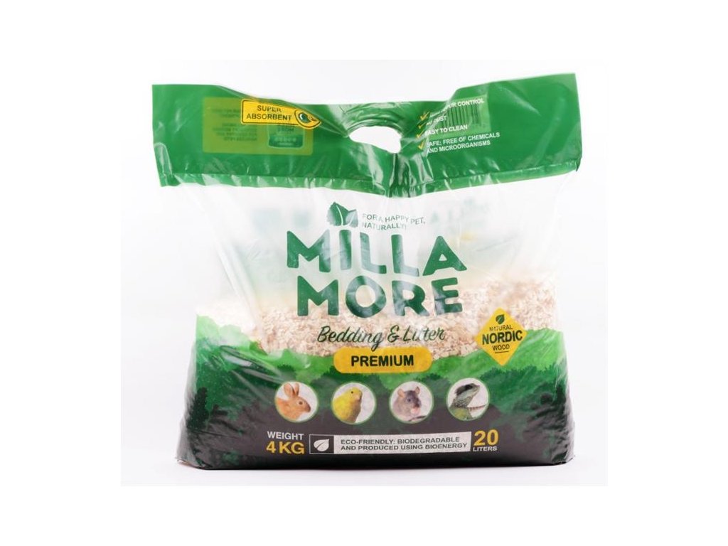 Pro podestýlání drobných savců a plazů lze kombinovat větší štěpky Premium s drobnějšími štěpkami Supersoft. Hnízdní hmota MillaMore poslouží zvířatům jako materiál pro stavbu hnízd, úkrytů i jako zábavný materiál na hraní.