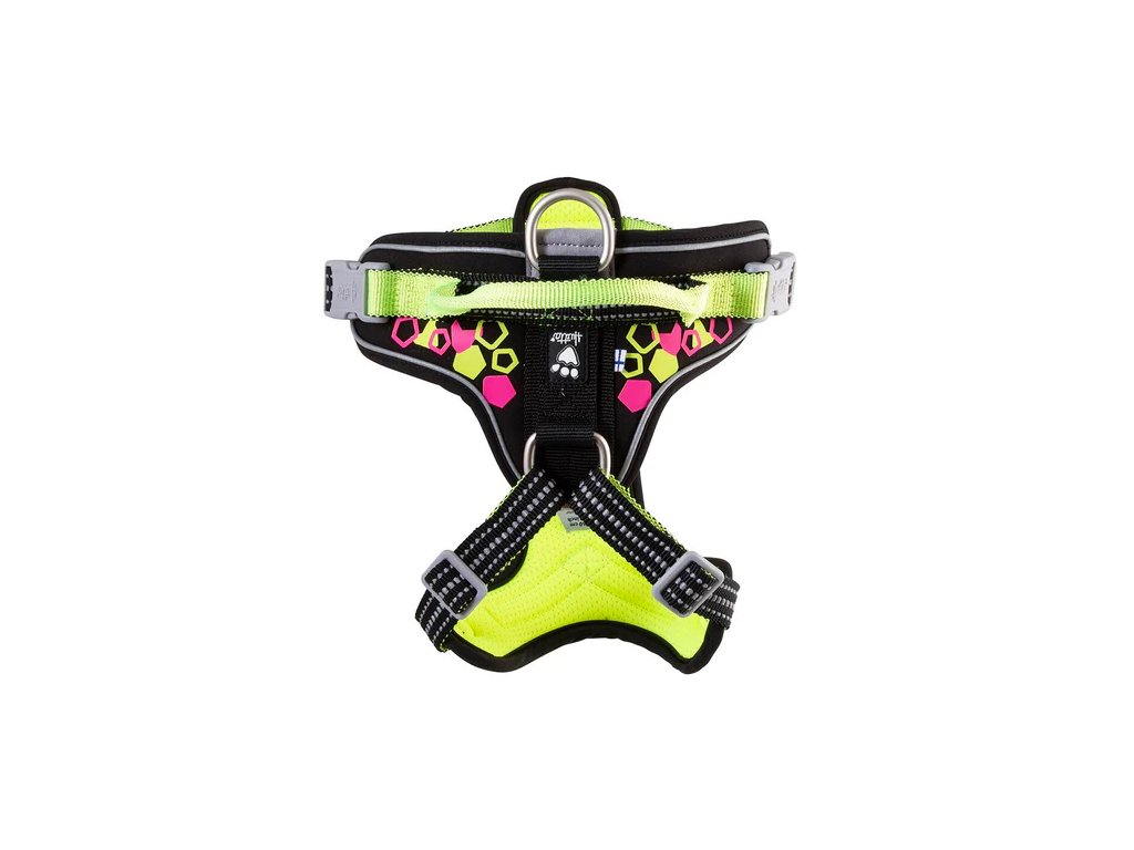 Neonový postroj Weekend Warrior je jasný, barevný, zábavný a bezpečný. Vyznačuje se velkou reflexní plochou, včetně velkého, světelného 2-barevného reflexního designového potisku, 3M reflexním lemováním a speciálním 3M reflexním pruhem na popruzích pro zajištění vysoké viditelnosti vašeho psa za špatných světelných podmínek. Tato speciální verze neonového postroje byla speciálně vyvinuta pro majitele psů, kteří se pohybují v rušných městských oblastech, takže procházky, běhání a jakýkoli jiný čas strávený venku s vaším psem bude uvolněnější a zábavnější.Samotný postroj je ergonomicky navržený a vhodný pro aktivní psy. Jednou z výhod jeho promyšleného designu je, že postroj rozděluje sílu tahu vodítka rovnoměrně po hrudi psa. Je to proto, že ve společnosti Hurtta věříme, že pohodlí psa je pro majitele stejně důležité jako jeho kontrola.