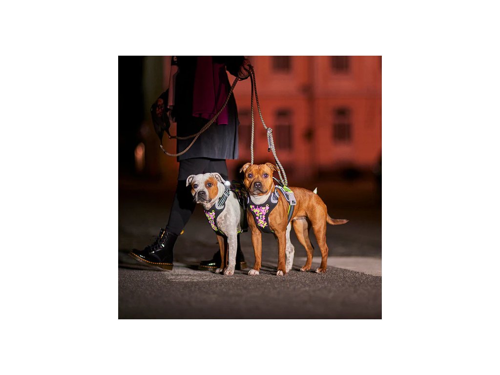Neonový postroj Weekend Warrior je jasný, barevný, zábavný a bezpečný. Vyznačuje se velkou reflexní plochou, včetně velkého, světelného 2-barevného reflexního designového potisku, 3M reflexním lemováním a speciálním 3M reflexním pruhem na popruzích pro zajištění vysoké viditelnosti vašeho psa za špatných světelných podmínek. Tato speciální verze neonového postroje byla speciálně vyvinuta pro majitele psů, kteří se pohybují v rušných městských oblastech, takže procházky, běhání a jakýkoli jiný čas strávený venku s vaším psem bude uvolněnější a zábavnější.Samotný postroj je ergonomicky navržený a vhodný pro aktivní psy. Jednou z výhod jeho promyšleného designu je, že postroj rozděluje sílu tahu vodítka rovnoměrně po hrudi psa. Je to proto, že ve společnosti Hurtta věříme, že pohodlí psa je pro majitele stejně důležité jako jeho kontrola.