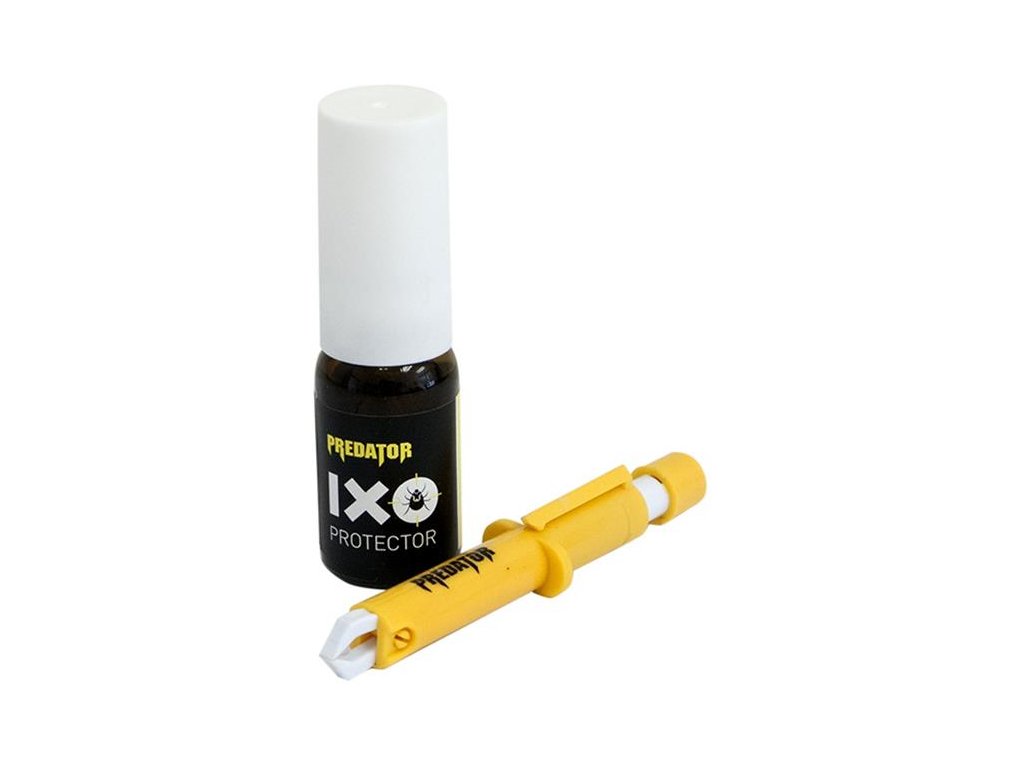 Predator IXO Protector souprava k odstranění klíštěte obsahuje pinzetu a roztok ve formě spreje. Je určena k bezpečnému odstranění klíštěte a k důkladnému očištění pokožky před i po zákroku.