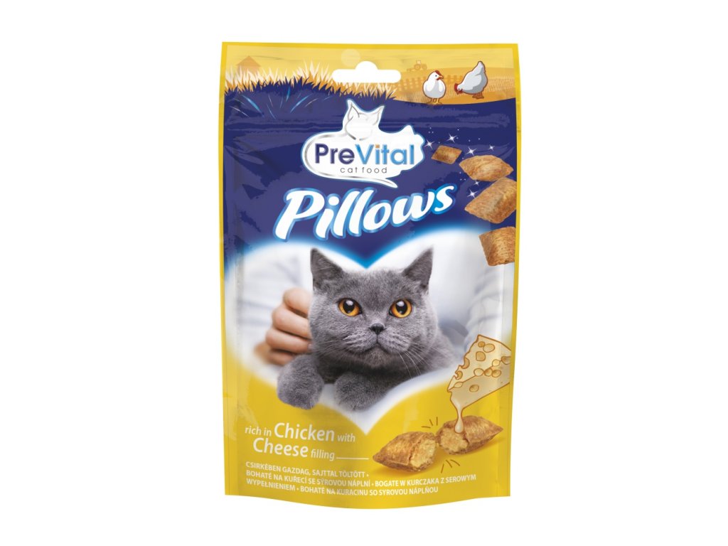 Lahodný pamlsek pro kočky ve tvaru polštářku s kuřecí příchutí, plněné sýrem.