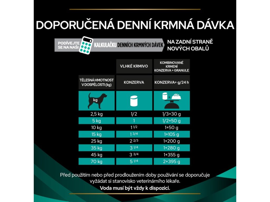 Při kombinovaném krmení suchým a vlhkým krmivem se řiďte doporučením na obale granulí PPVD Canine EN Gastrointestinal™.