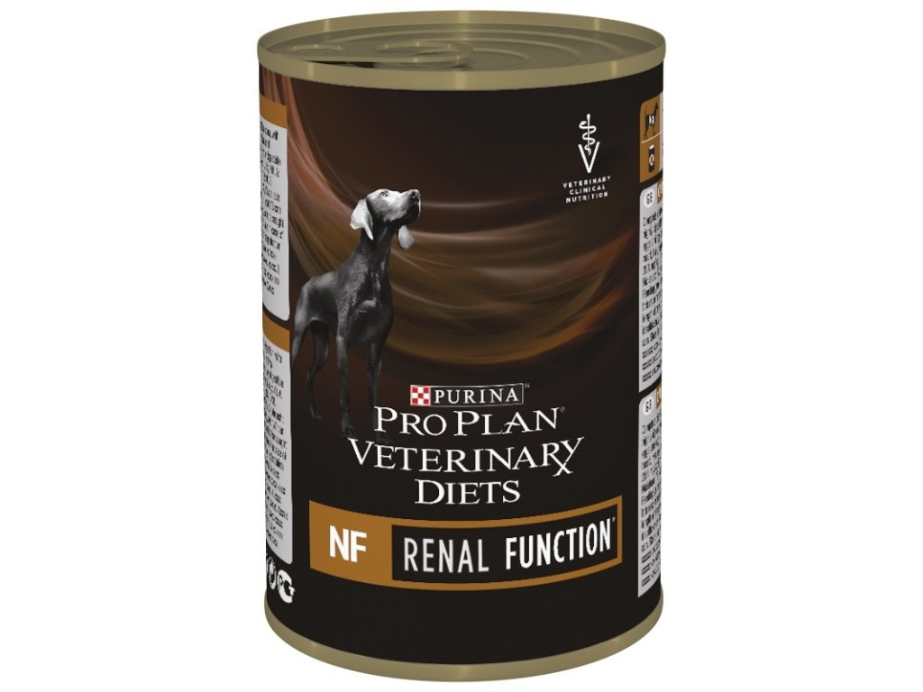 Purina PPVD Canine - NF Renal Function je kompletní veterinární dietní krmivo pro podporu psů s chronickým onemocněním ledvin. Receptura Canine NF Renal Function má snížený obsah fosforu, protože fosfor prokazatelně přispívá k progresi onemocnění. Snížený obsah vysoce kvalitních bílkovin pomáhá snížit tvorbu toxinů a napomáhá také při udržení svalové hmoty. Omega-3 mastné kyseliny pomáhají snižovat hypertenzi v glomerulech a působí na ledviny protizánětlivě.Dietní krmivo Canine NF Renal Function není určeno psům, kteří potřebují vysoký příjem fosforu a bílkovin, jako jsou březí feny a rostoucí štěňata.