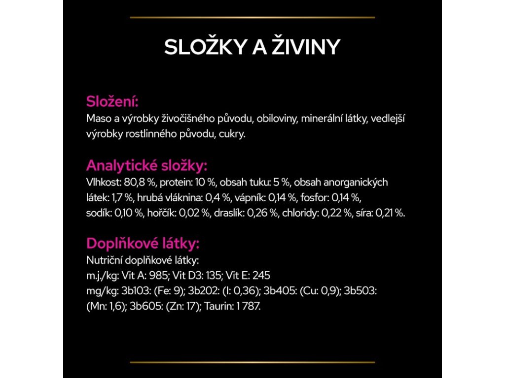 m.j./kg: vit A: 985; vit D3: 135; vit E: 245mg/kg : 3b103 : (Fe: 9); 3b202 : (I: 0,36); 3b405 : (Cu: 0,9); 3b503 : (Mn: 1,6); 3b605 : (Zn: 17); taurin : 1 787.