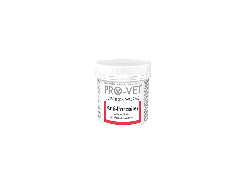 Antiparazitika pro psy ve formě pastilek představují spojení přírodních antibiotik a preventivní produkt v jednom. Tyto 100% přírodní syrovátkové pastilky vašeho chlupáče obrní před klíšťaty, roztoči, blechami, vešmi a střevními červy. Tato antiparazitika obsahují pivovarský kvasnicový extrakt, vitamíny skupiny B a česnek (respektive jeho blahodárnou látku allicin ve vyváženém množství). 100% přírodní antiparazitikum.Zatočí s blechami, klíšťaty, vešmi a červy.Antibiotické a protiplísňové účinky.Posilovač imunity vašeho mazlíčka.Prospívají cévám a srdci.Mají pozitivní vliv na hladinu cholesterolu v krvi.A bonus na závěr – tyto tabletky chutnají i těm nejmlsnějším jazýčkům. Složení100% přírodní antiparazitikum pro psy, dehydrovaná syrovátka, pšeničný škrob, dextróza, dehydratovaný mléčný kvasnicový extrakt, dehydrovaná mořská zelená řasa, pivovarský kvasnicový extrakt, alliin (0,05%), allicin (0,05%), kořenící směs, mrkev, vitamíny.Doplňkové látky na 1 kg: vitamín B1 0,08 %, vitamín B2 0,11 %, vitamín B3 0,059 %, vitamín B6 0,006 %, vitamín B12 0,71 %, vitamín A 9,474 IE, vitamín D3 1,053 IE, vitamín E 7 mg, hrubý protein 11 %, hrubý tuk 7,1 %, hrubý popel 2,9 %, hrubá vláknina 3,5 %, vlhkost 7 %. Doporučené dávkováníPodávejte denně 2–3 tablety na každých 10 kg hmotnosti psa. Důležitá upozorněníNení určeno pro lidskou spotřebu. Uchovejte mimo dosah dětí. Zvýšený příjem nezpůsobí žádné negativní vedlejší účinky. Skladujte v suchu. Množství v baleníBalení obsahuje ± 90 tablet.