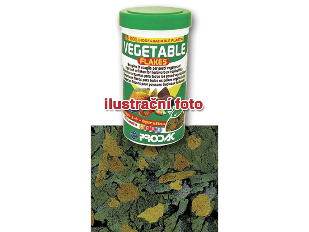Kompletní krmivo, ve formě vloček, pro okrasné akvarijní rybky, zvláště pro ryby preferující rostlinnou stravu.