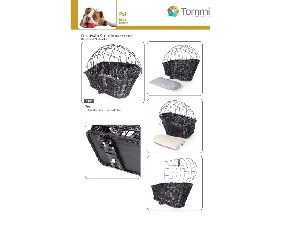 Proutěný koš na zadní nosič kola pro přepravu koček, králíků a malých psích plemen.• Drátěný poklop pro zabezpečení zvířete• Polštář pro pohodlí při cestováníRozměr: 55 x 38 x 50 cmNosnost: 12 kg