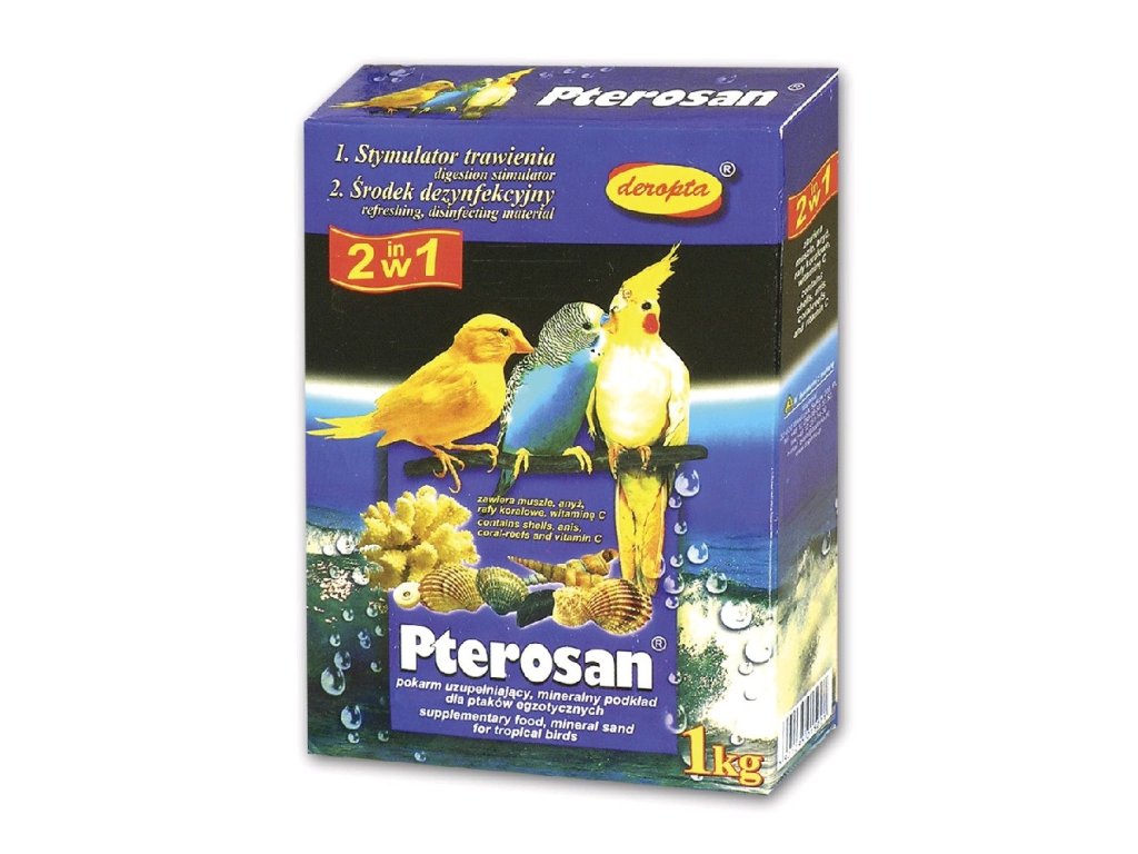 Pterosan - doplňkové krmivo pro exotické ptactvo.