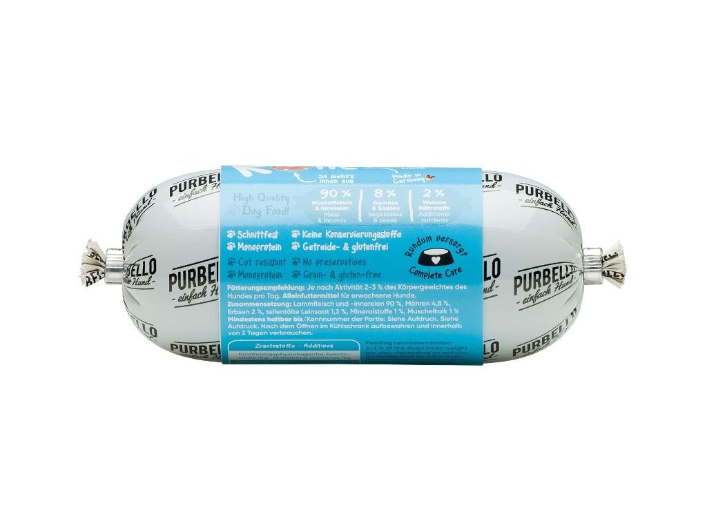Vhodné i pro psy s citlivým zažíváním. Jedná se o kompletní krmivo.PURBELLO je monoproteinové mokré krmivo pro psy vytvořené pro zdravou výživu psů.Díky svému složení s jediným zdrojem živočišných bílkovin, vysokým podílem masa a té správné receptuře je PURBELLO zdravé a vysoce chutné.Krmivo je také velmi dobře stravitelné a vhodné i pro psy s citlivým zažíváním.PURBELLO:- monoproteinová receptura- snadné dávkování- vysoký podíl masa – žádná moučka- pouze čerstvé maso, zelenina a ovoce- bez obilovin- bez lepku- bez umělých přísad- bez konzervačních látek- vyrobeno v Německu