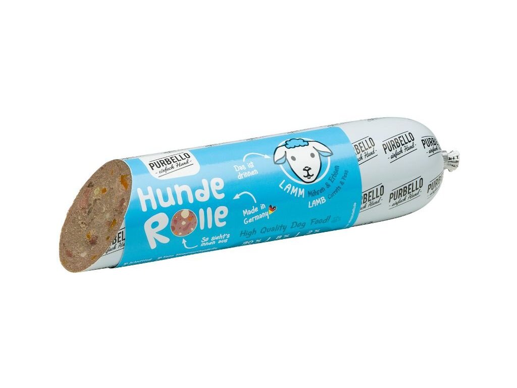 Zdravý a chutný masový salám, který obsahuje 90 % čerstvého jehněčího masa, mrkev, hrášek a lněné semínko.