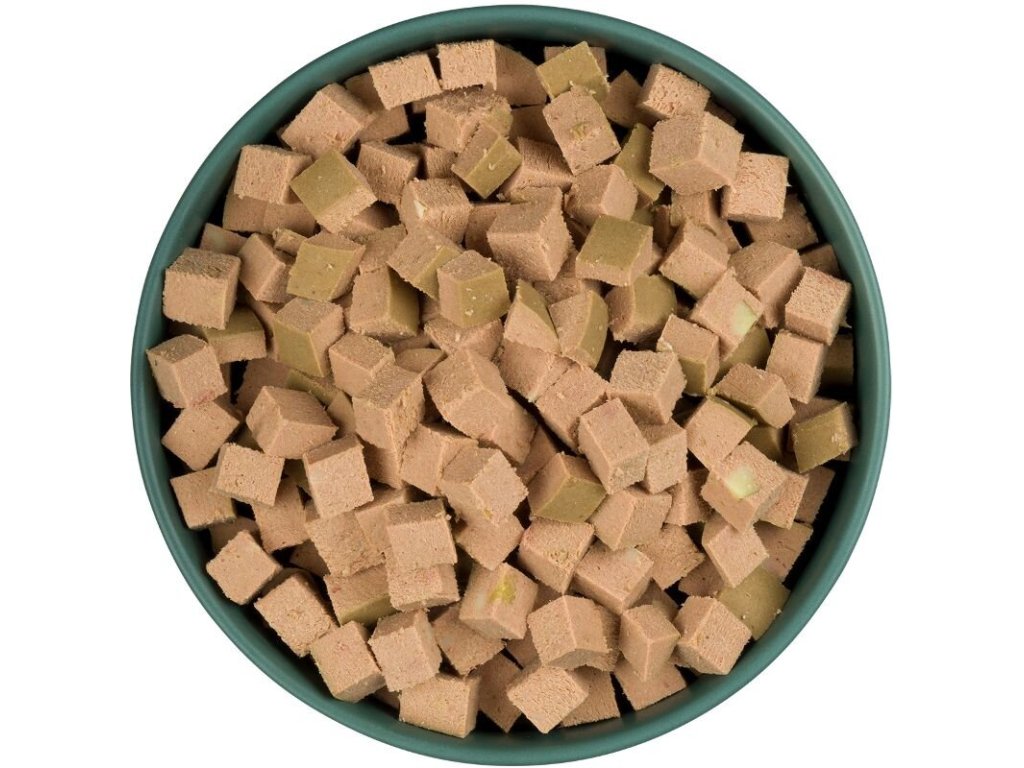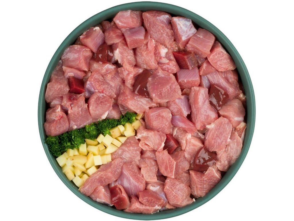 Složení: krůtí maso a krůtí vnitřnosti 90%, brambory 5%, brokolice 3%, minerály 1%, vápenec 1%