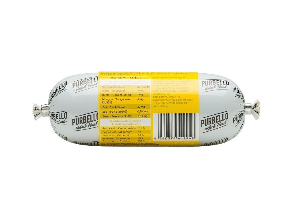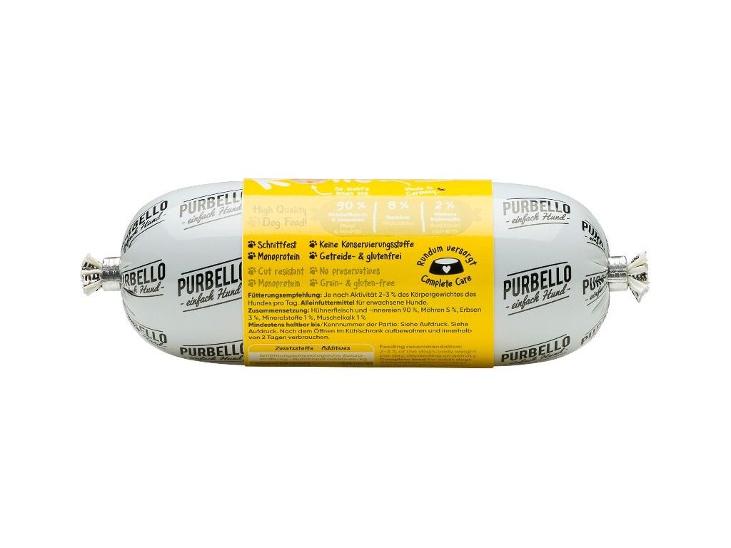 Vhodné i pro psy s citlivým zažíváním. Jedná se o kompletní krmivo.PURBELLO je monoproteinové mokré krmivo pro psy vytvořené pro zdravou výživu psů.Díky svému složení s jediným zdrojem živočišných bílkovin, vysokým podílem masa a té správné receptuře je PURBELLO zdravé a vysoce chutné.Krmivo je také velmi dobře stravitelné a vhodné i pro psy s citlivým zažíváním.PURBELLO:- monoproteinová receptura- snadné dávkování- vysoký podíl masa – žádná moučka- pouze čerstvé maso, zelenina a ovoce- bez obilovin- bez lepku- bez umělých přísad- bez konzervačních látek- vyrobeno v Německu