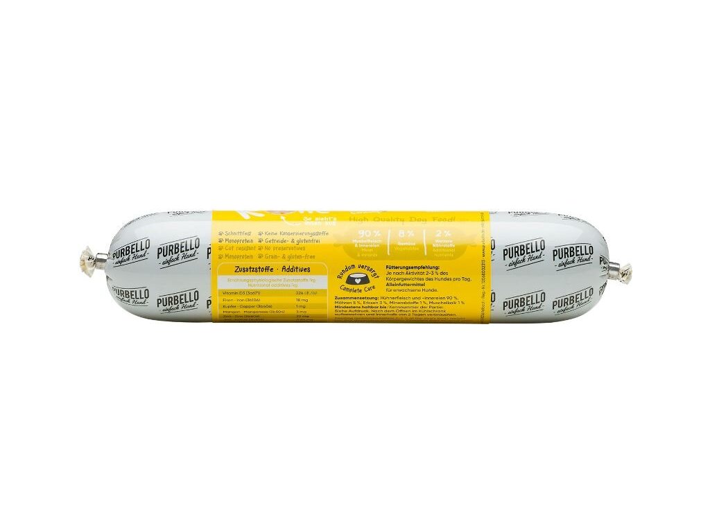Vhodné i pro psy s citlivým zažíváním. Jedná se o kompletní krmivo.PURBELLO je monoproteinové mokré krmivo pro psy vytvořené pro zdravou výživu psů.Díky svému složení s jediným zdrojem živočišných bílkovin, vysokým podílem masa a té správné receptuře je PURBELLO zdravé a vysoce chutné.Krmivo je také velmi dobře stravitelné a vhodné i pro psy s citlivým zažíváním.PURBELLO:- monoproteinová receptura- snadné dávkování- vysoký podíl masa – žádná moučka- pouze čerstvé maso, zelenina a ovoce- bez obilovin- bez lepku- bez umělých přísad- bez konzervačních látek- vyrobeno v Německu