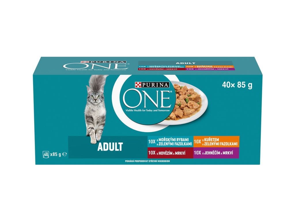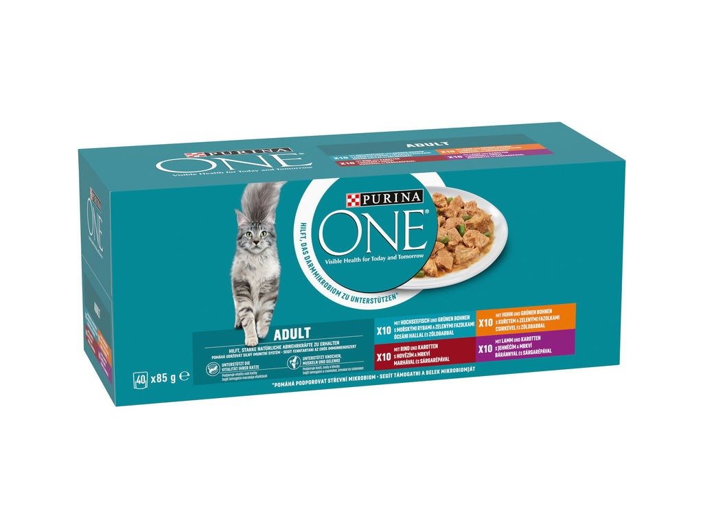 Kapsičky Purina One Multipack jsou kompletním a vyváženým krmivem pro dospělé kočky. Mix vynikajících receptur s hovězím masem, krůtím masem, kuřecím masem a lososem. Kapsičky kombinují měkké kousky nadrobno nakrájených filetek se zeleninou v lahodné šťávě a představují tak ideální kombinaci vysoce kvalitní výživy a lahodné chuti.