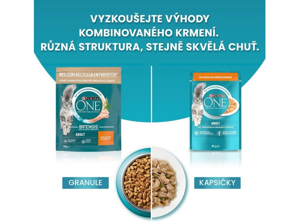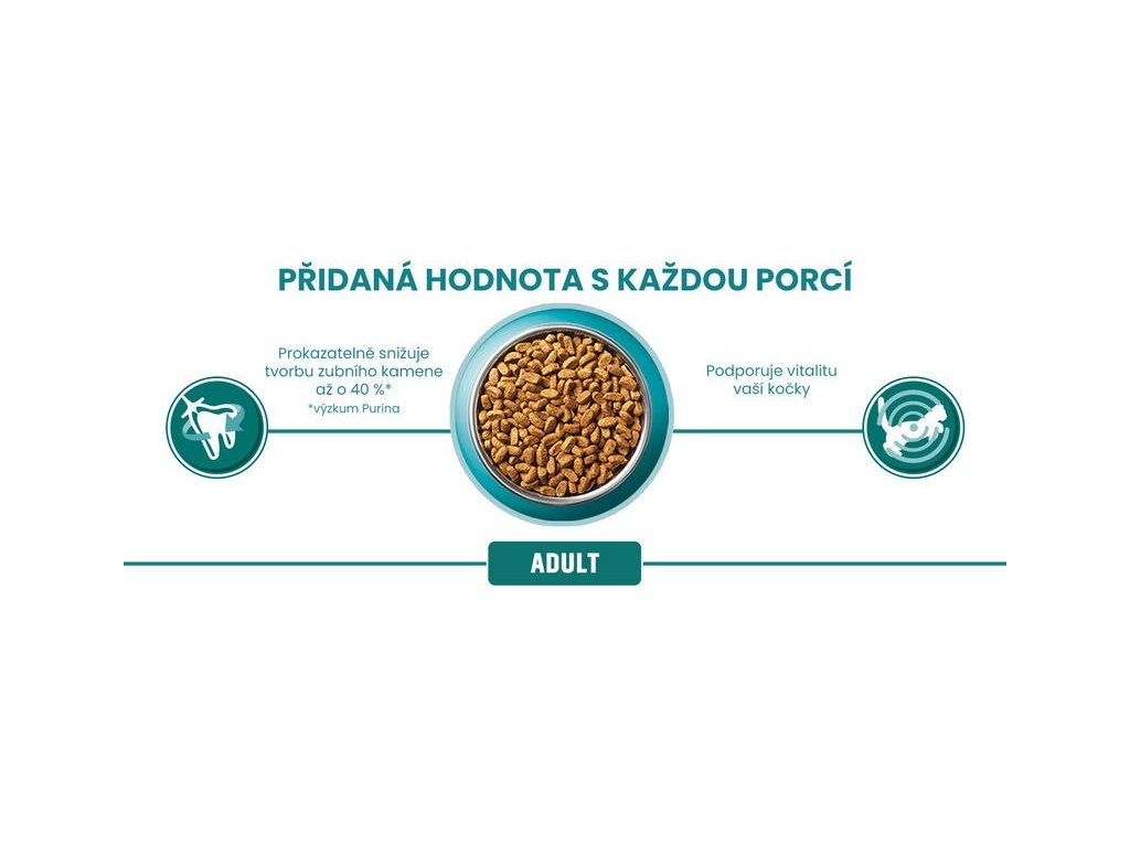 PURINA ONE® Adult je receptura nutričně přizpůsobená pro kočky starší 1 roku. Pro zdraví vaší kočky je nezbytný vyvážený střevní mikrobiom. Ten má přímý dopad na její imunitní systém. Mikrobiom je tvořen biliony mikroorganismů, které žijí ve střevech a jsou pro každou kočku unikátní. Rovnováha mikroorganismů je důležitá pro dobré zažívání a má pozitivní vliv na imunitní systém a celkovou pohodu vaší kočky.