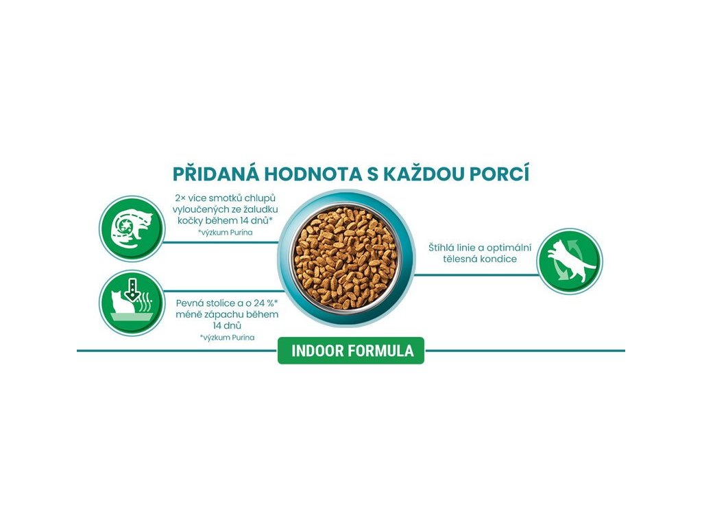 Klíčové vlastnosti granulí pro kastrované kočky Purina ONE indoor s krůtou: