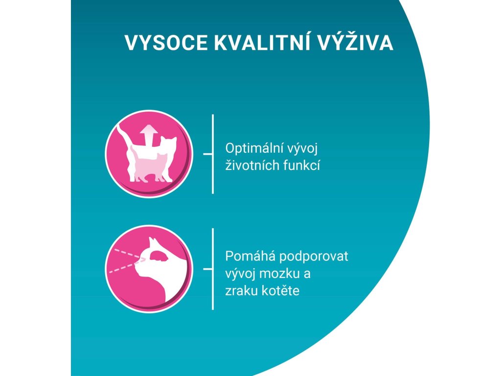 Pomáhá podporovat vývoj mozku a zraku kotěte.