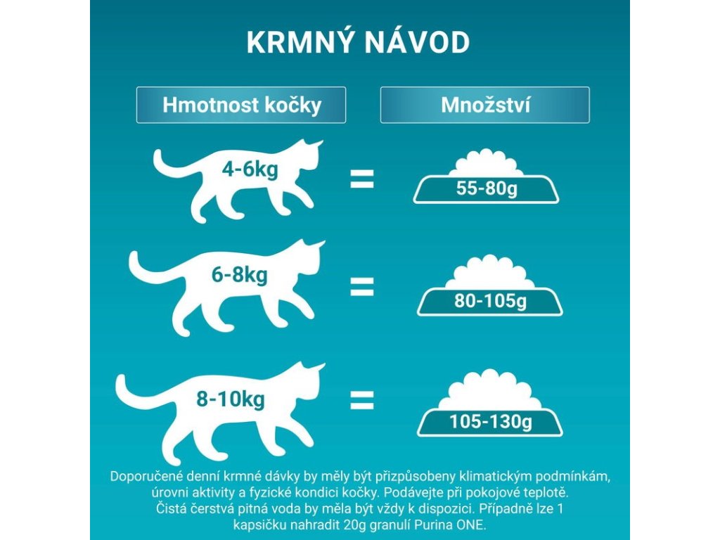 Viz tabulka. Objevte také vysoce kvalitní výživu v kapsičkách Purina ONE - lahodné receptury vyvinuté pro specifické potřeby vaší kočky.