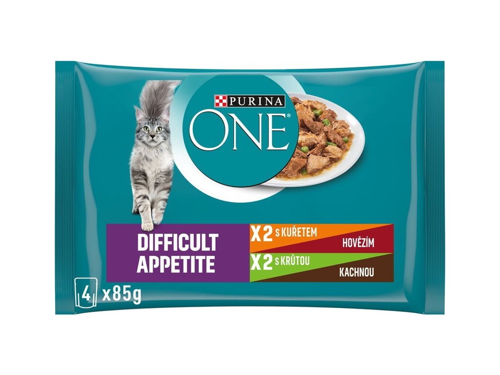 Purina One Difficult Appetite kuře a hovězí krůta a kachna 4 x 85 g