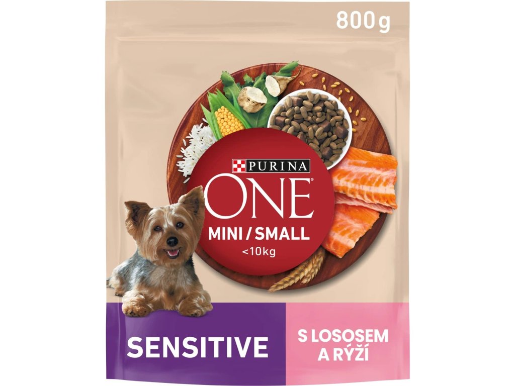Granule Purina One Mini/Small pro malé plemena psů. Sensitive je chutná receptura s lososem, s vysokým obsahem omega 3 mastných kyselin, které pomáhají chránit citlivou pokožku Vašeho miláčka a přírodní prebiotikum podporuje správného trávení.