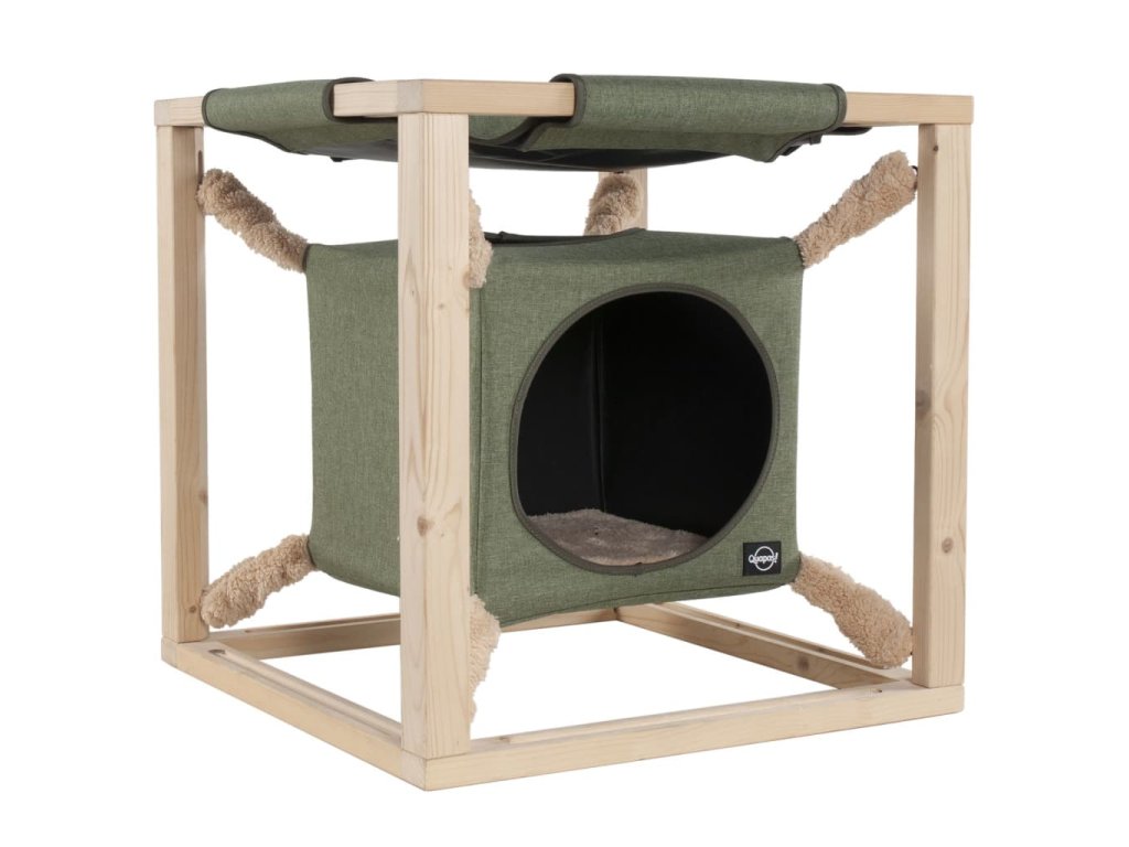 Kočičí designový domeček od značky Quapas! je to nejlepší místo, kde si můžete vaše kočka skvěle odpočinout. Kočka má na výběr mezi úžasně chráněným místem v krychli nebo v horní části houpací sítě s výhledem do místnosti.