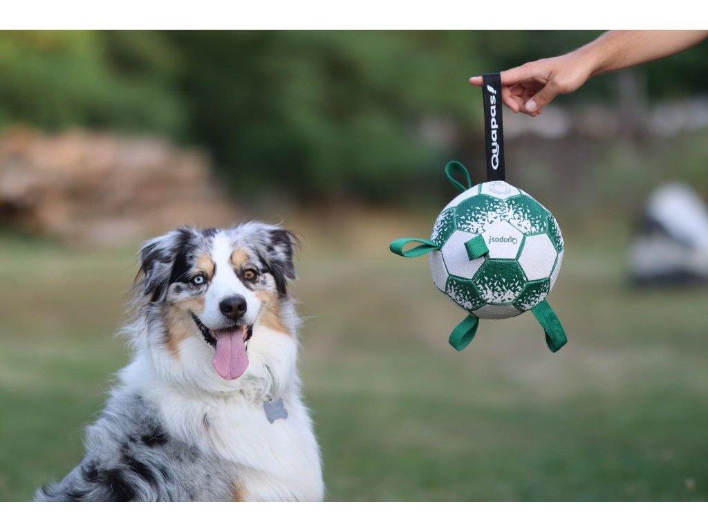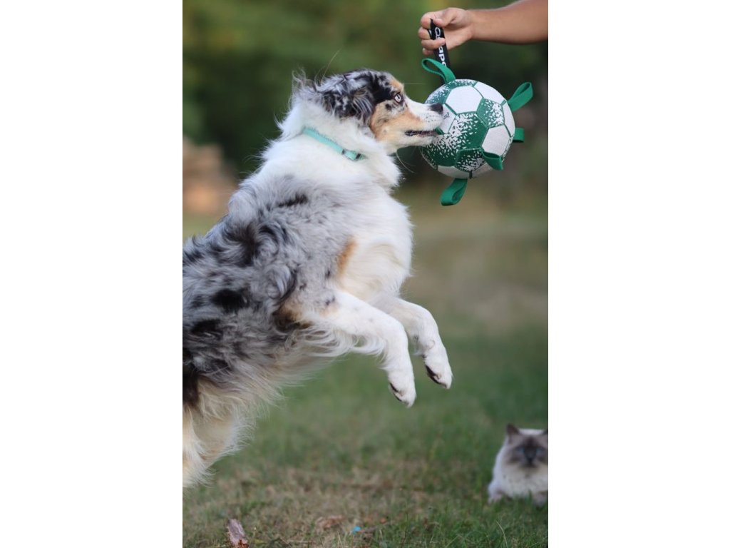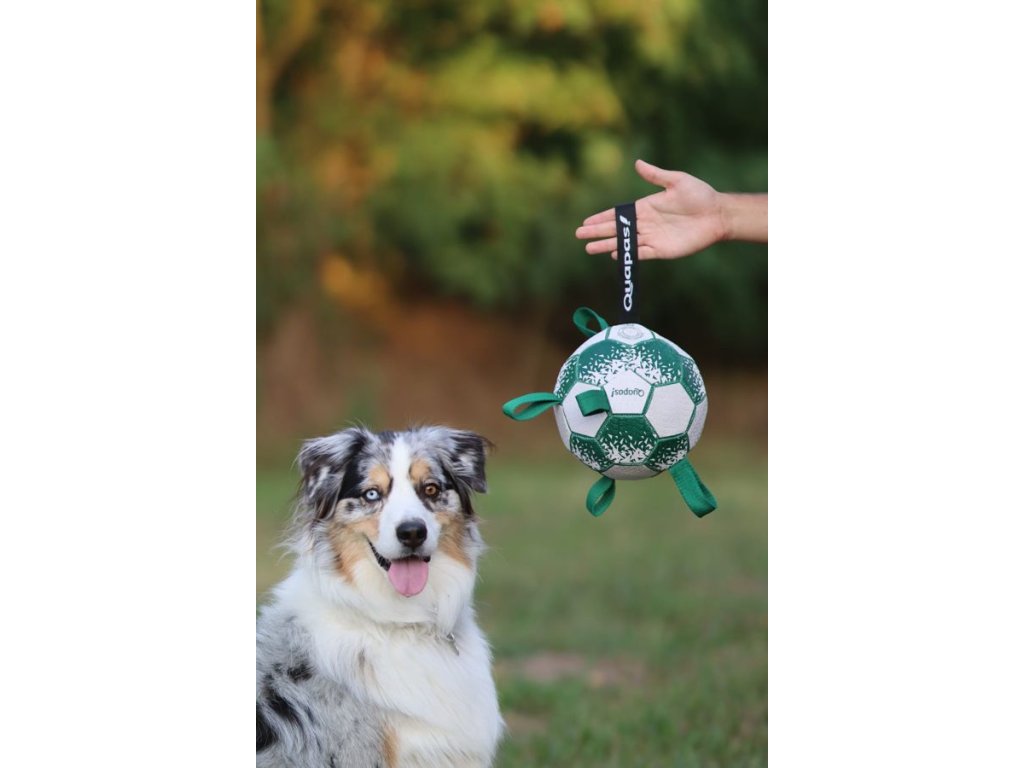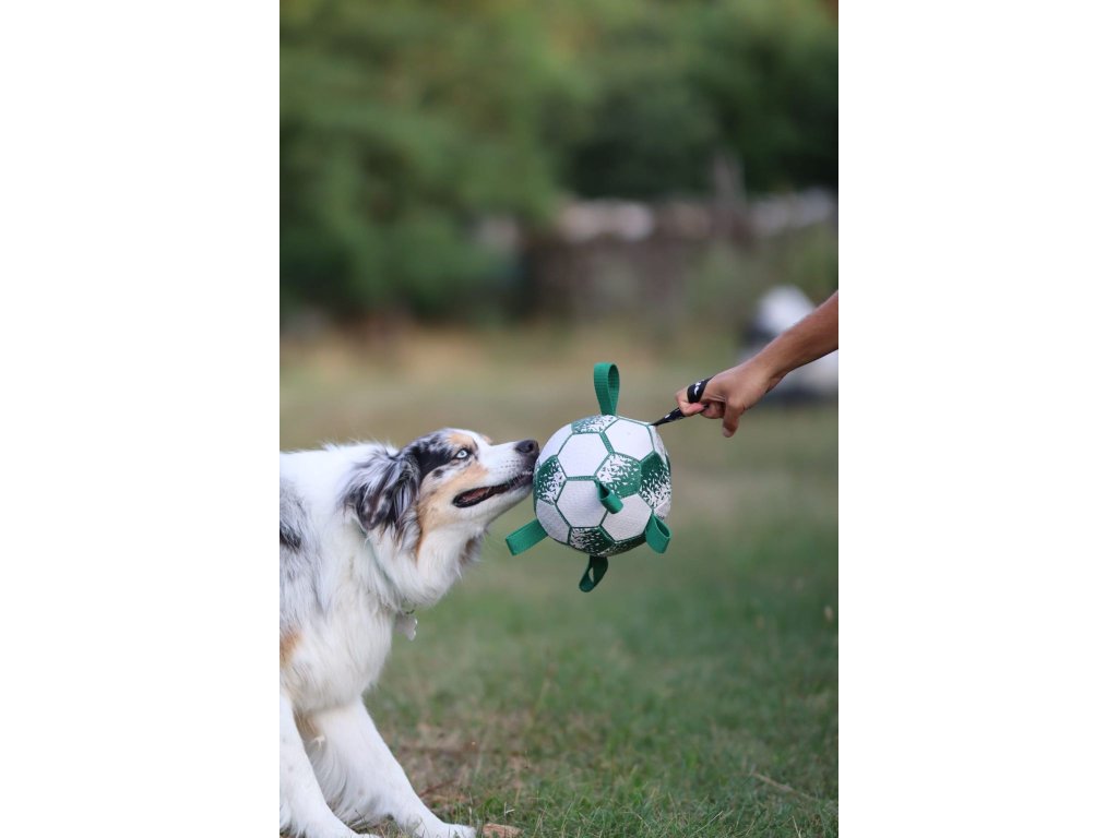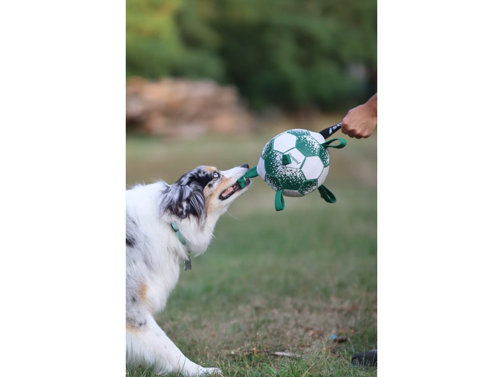 Tento fotbalový míč má řadu poutek, takže jej váš pes může snadno nosit či zvednout, což je u běžného míče problém.