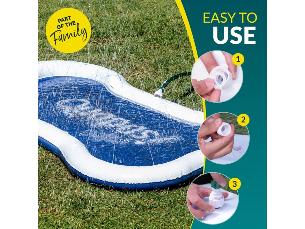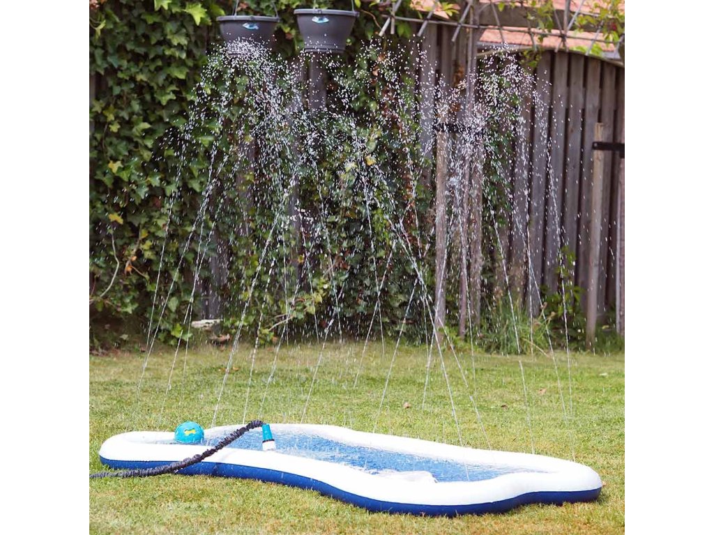 Jednoduše připojte hadici, otočte kohoutkem na vodu a hurá! S naší vodní podložkou lze po vaší zahradě stříkat až dva metry vysoké vodní fontány.