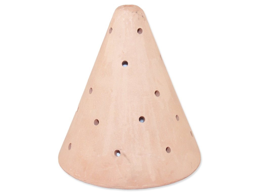 Keramické stínítko kuželovitého tvaru s otvory. Průměr: 11 cm, výška 13 cm.