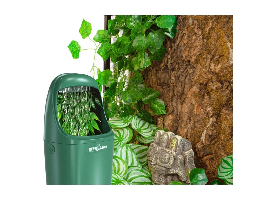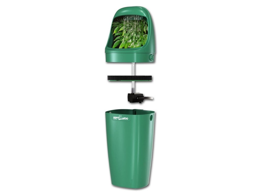 V horní otevřené části se nachází rostlina, která je za pomoci čerpadla neustále skrápěna vodou, čímž se sama stává napájecím prvkem pro ty druhy plazů, kteří olizují vodu z listů a nepijí z nádoby.