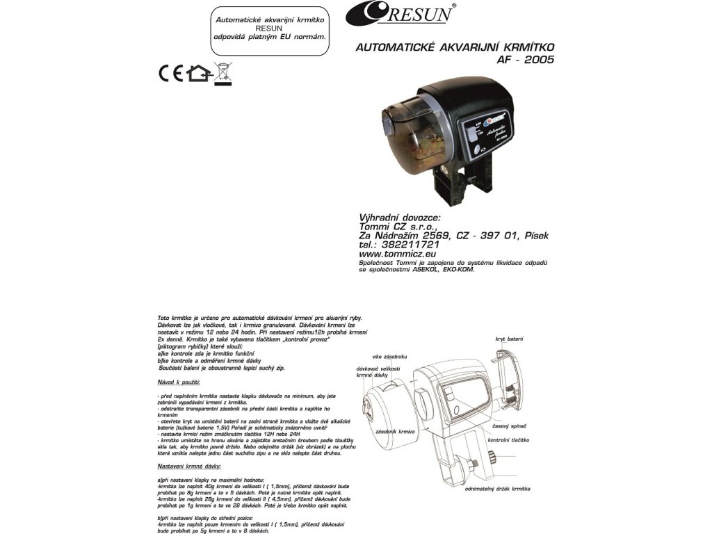 Krmítko je vybaveno tlačítkem "kontrolní provoz" (piktogram rybičky) které slouží ke kontrole, zda je krmítko funkční a k odměřění krmné dávky.