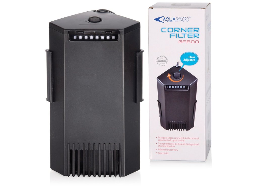 Vnitřní filtr do akvárií v moderním designu pro umístění v rohu nádrže.