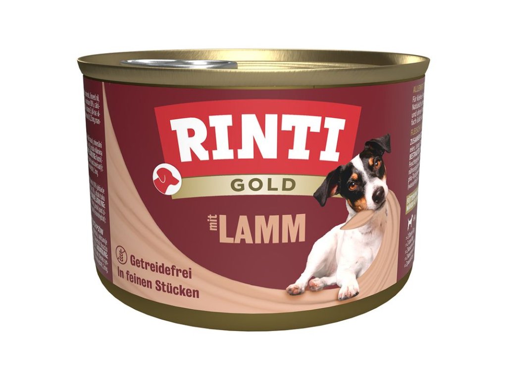 Konzerva s jemnými kousky jehněčího masa, kompletní krmivo pro dospělé psy.