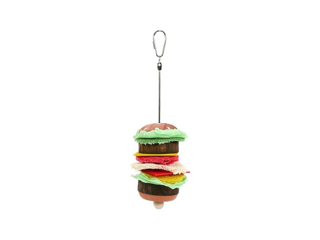 Různé textury a barvy pomáhají domácí mazlíčky stimulovat a zabavit. Pro ještě větší zábavu a pestrost lze na kovovou jehlu „burgeru“ přidat pamlsky nebo zeleninu.