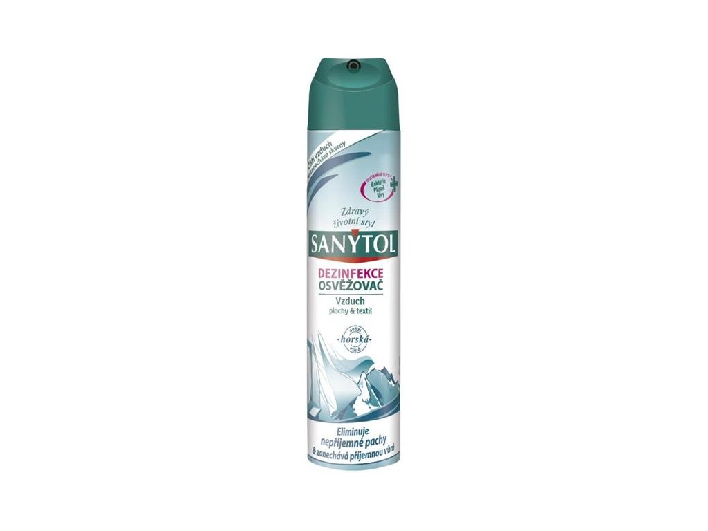 Dezinfekční osvěžovač vzduchu, povrchů a textilií s vůní hor.SANYTOL vyčistí vzduch a vydezinfikuje povrchy v jednom jediném kroku. Jeho složení zajišťuje dokonalou hygienu a zanechává příjemně svěží vůni.