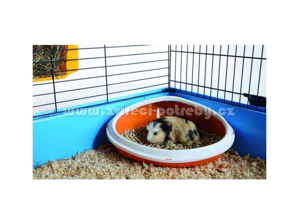 Rohová toaleta do klece. Vhodné pro střední hlodavce a králíky. Velikost: 36 x 26,5 x 15,5 cm. Dodávané různé barvy.
