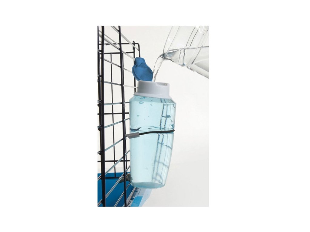 Láhev na vodu z umělé hmoty s nerezovým zakončením a s ventilem, který zabraňuje kapání. Váš hlodavec se snadno dostane ke své vodě a zároveň je zabráněno kapání vody a klec zůstane suchá. Na horní straně pítka se nachází víčko, kterým je možno láhev jednoduše naplnit přímo v kleci. Pítko se připevní dodanou gumovou páskou, která je pomocí 2 nerezových háčků zavěšena v kleci. Hluboká rýha na vnější straně lahve zabraňuje jejímu proklouzávání a zaručuje bezpečné upevnění.