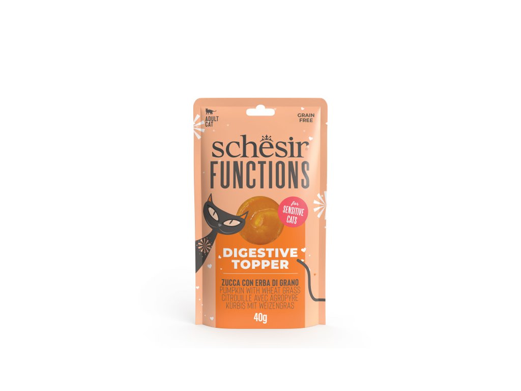Schesir Functions je řada funkčních topperů vytvořených tak, aby doplňovaly kočičí stravu hydratací a specifickými výhodami.