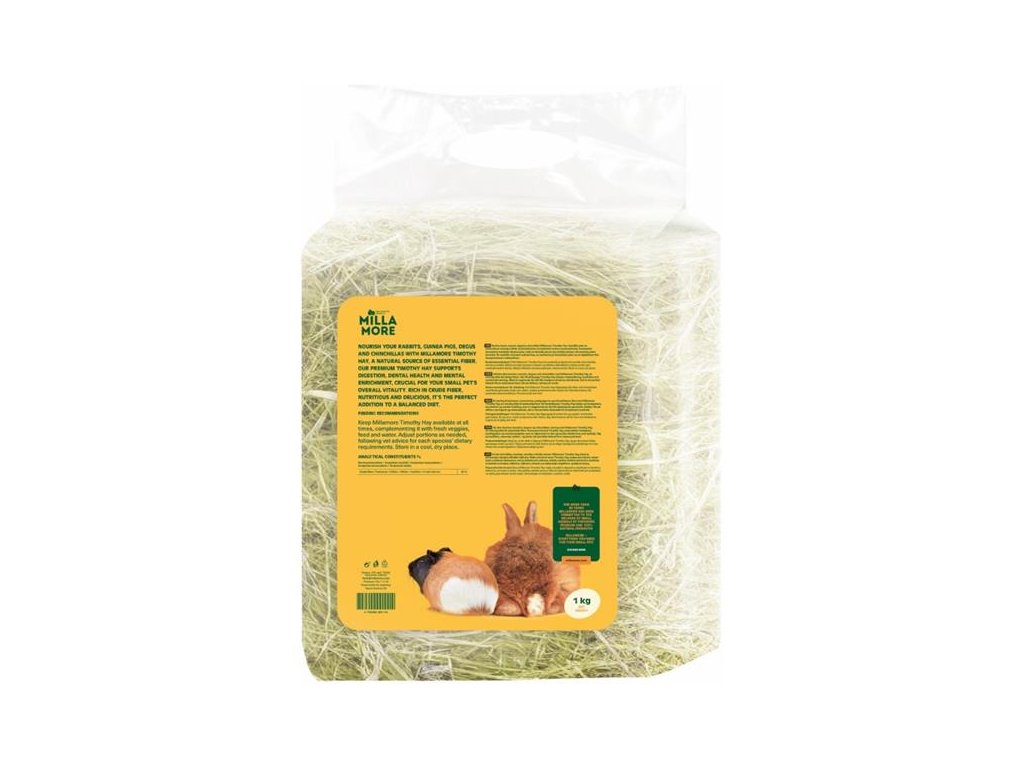 Seno je nezbytnou součástí každodenní stravy králíků, morčat, osmáků, činčil a dalších drobných savců. Proto by jim mělo být podáváno v odpovídající kvalitě. Prémiové seno Millamore Timothy Hay z bojínku lučního (Phleum pratense) pochází z nejlepších travnatých polí v Evropě. Je výživné, chutné a představuje bohatý přírodní zdroj hrubé vlákniny (32 %), která podporuje trávení. Díky vysokému obsahu křemičitanů napomáhá také obrušování zubů (včetně stoliček), aby nedocházelo k jejich přerůstání.Estonské společnosti Tapvei, která seno Millamore vyrábí, záleží nejen na blahu drobných mazlíčků, ale i na stavu planety. Seno proto získávají udržitelnými postupy s minimální ekologickou stopou.